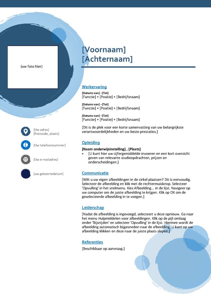 Zorg dat je naam, telefoonnummer en e-mailadres bovenaan staan. Voeg eventueel een link naar je LinkedIn-profiel toe.